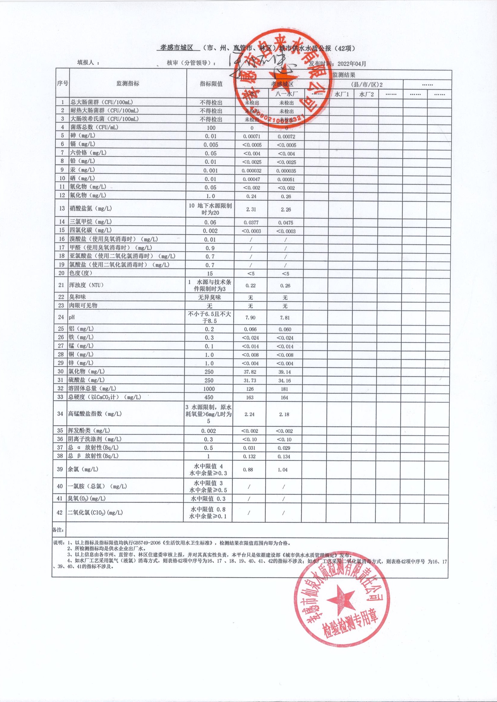 2022年4月水質(zhì)報(bào)告