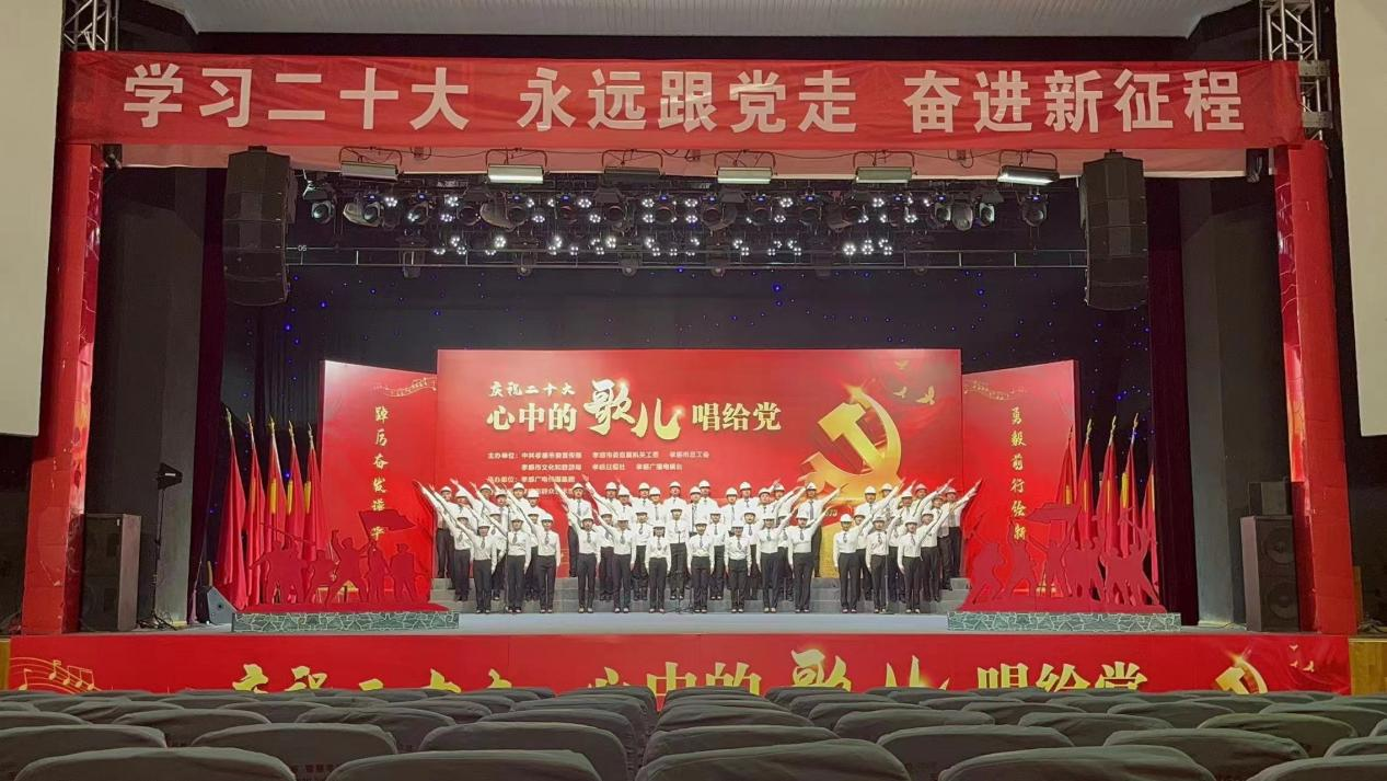 11月18日,我公司員工魯佳、劉琴作為澴川國投合唱隊員,參加了由中共孝感市委宣傳部、市委直屬機關工委、市總工會、市文化和旅游局、孝感日報社、孝感廣播電視臺主辦的“慶祝二十大 心中的歌兒唱給黨”孝感云傳唱活動。