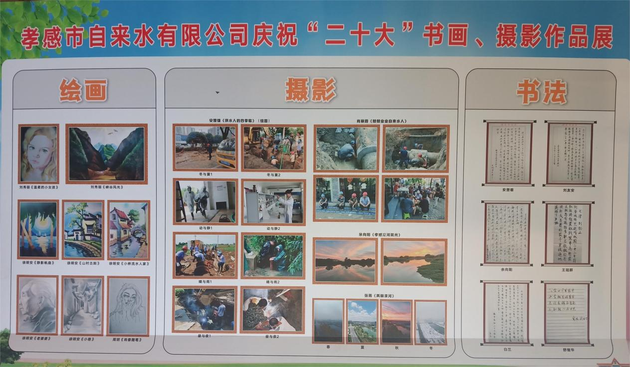 為全面學習宣傳貫徹黨的“二十大”精神,響應澴川國投“獻禮偉大奮斗 墨繪改革國投”藝展活動,豐富職工文化生活,11月中旬,公司組織開展了慶祝“二十大”書畫、攝影藝術作品展征集活動。
