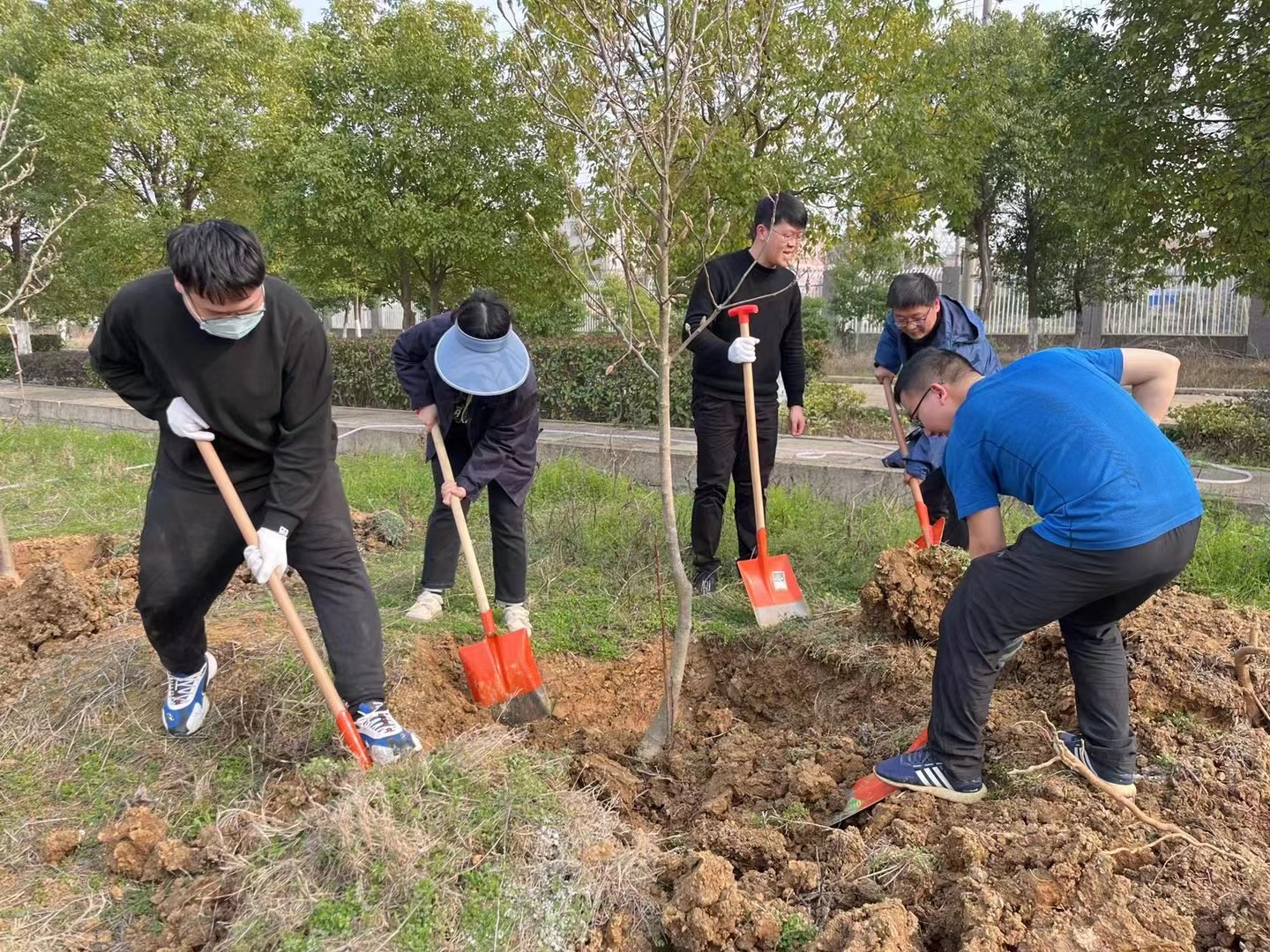 志愿者們一行三十余人,來(lái)到了八一水廠院內(nèi)待種植綠化苗木的空地。活動(dòng)開始后,大家分工合作,鏟土入坑、扶苗培土,干得熱火朝天。