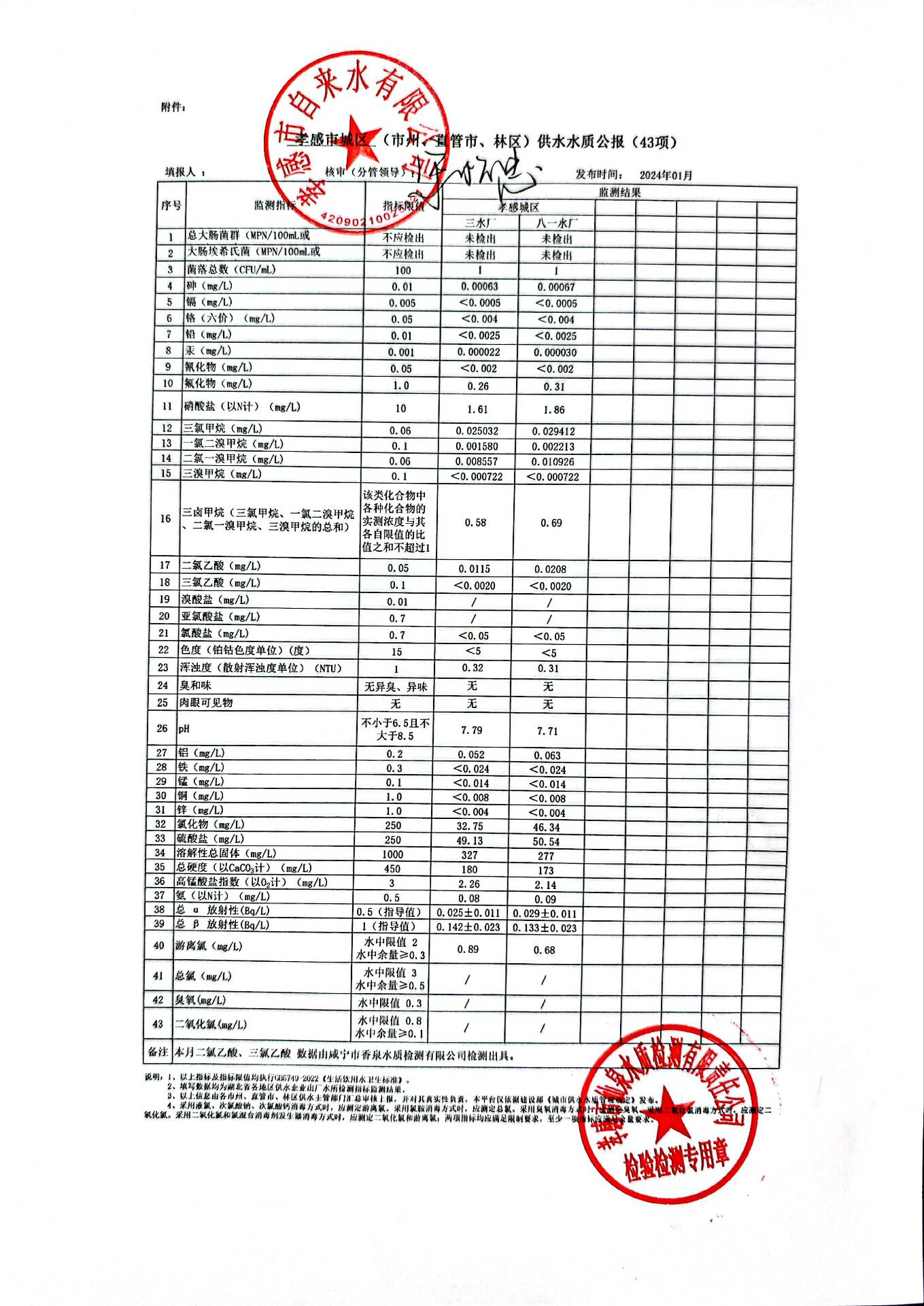 2024年1月水質(zhì)報(bào)告