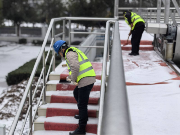 以雪為令,雪停路清。22日早上7點,公司派出5名志愿服務隊員參與公交站臺掃雪除冰行動,有力保障群眾公交出行安全。除此之外,為了保證生產廠區道路暢通,公司采取有力舉措,仙女湖水廠、二水廠、一水廠、龍宮等多個辦公區域共調動工作人員100余名和2臺鏟車,采取撒鹽破冰、鏟雪等方式,確保生產及辦公區域道路暢通。