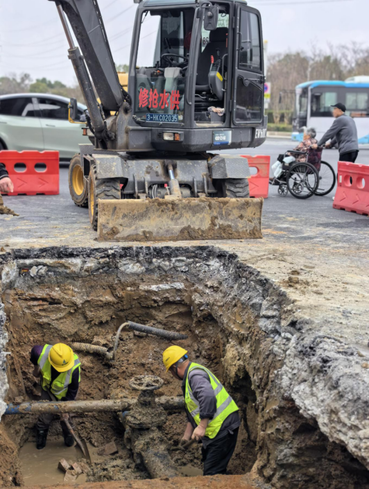 開挖管溝、鋪設(shè)臨時(shí)保供管道、主管網(wǎng)破口,連日來,乾坤大道老舊供水管網(wǎng)改造工程正在有序進(jìn)行中。