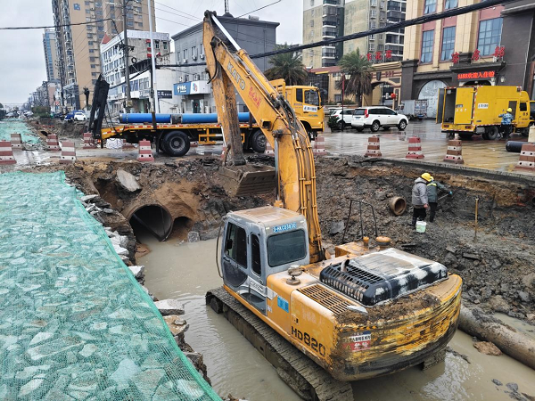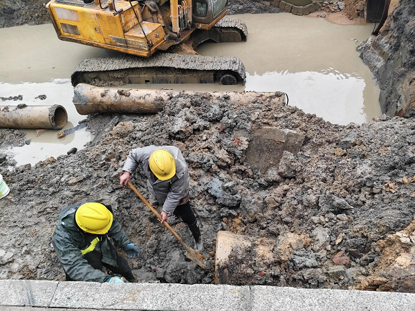 3 月 3 日下午三點(diǎn)二十五分,公司接到市民反映,孝武大道久尊酒店門口出現(xiàn)管網(wǎng)漏水情況。經(jīng)調(diào)查,此次管網(wǎng)漏水,是由于道路施工開挖作業(yè)中存在違規(guī)操作。施工方致使供水管網(wǎng)暴露在外,卻未進(jìn)行任何加固處理。作業(yè)坑道在大雨的持續(xù)沖刷下發(fā)生了滑坡現(xiàn)象。最終,在滑坡產(chǎn)生的強(qiáng)大外力作用下,該地段兩根DN400水泥管脫頭,進(jìn)而引發(fā)了管網(wǎng)漏水問(wèn)題。