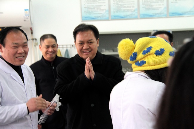 來到位于城郊的三水廠,潘啟勝與值班崗位上的干部職工一一握手,向大家致以新春問候。他特地走進(jìn)水質(zhì)監(jiān)測站化驗室,看望正在緊張工作中的化驗人員,與大家親切交談,詢問水質(zhì)檢測能力與水質(zhì)合格率等情況,并勉勵大家堅守崗位、辛勤工作,把好水質(zhì)關(guān),讓廣大市民度過一個祥和歡樂的新春佳節(jié)。