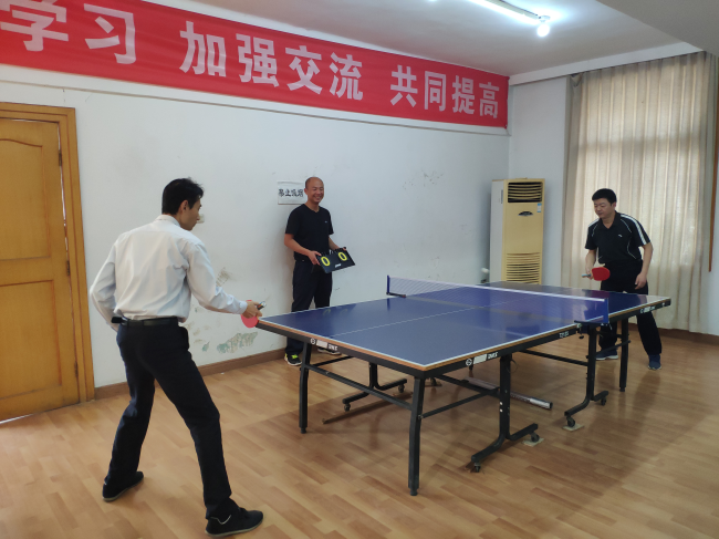 此次比賽分設(shè)男子單打、女子單打,團(tuán)體比賽項(xiàng)目。18日上午隨著一聲哨響比賽正式開(kāi)始,大家迅速進(jìn)入狀態(tài),爭(zhēng)奪十分激烈,球桌上不斷出現(xiàn)精彩對(duì)決,直拍、橫拍、扣球、旋轉(zhuǎn)球、弧線球等精彩扣殺、絕妙回?fù)蹙实爻尸F(xiàn)在賽場(chǎng)上,伴隨拉拉隊(duì)們的熱烈歡呼與吶喊,現(xiàn)場(chǎng)氣氛一再升溫。團(tuán)體冠亞軍決賽更是扣人心弦、高潮迭起,吶喊聲和歡呼聲此起彼伏,興奮的“好球”聲不斷。比賽時(shí)間雖短,但大家感受到了參與的快樂(lè)、享受著付出的愉悅、品味著成功的喜悅。