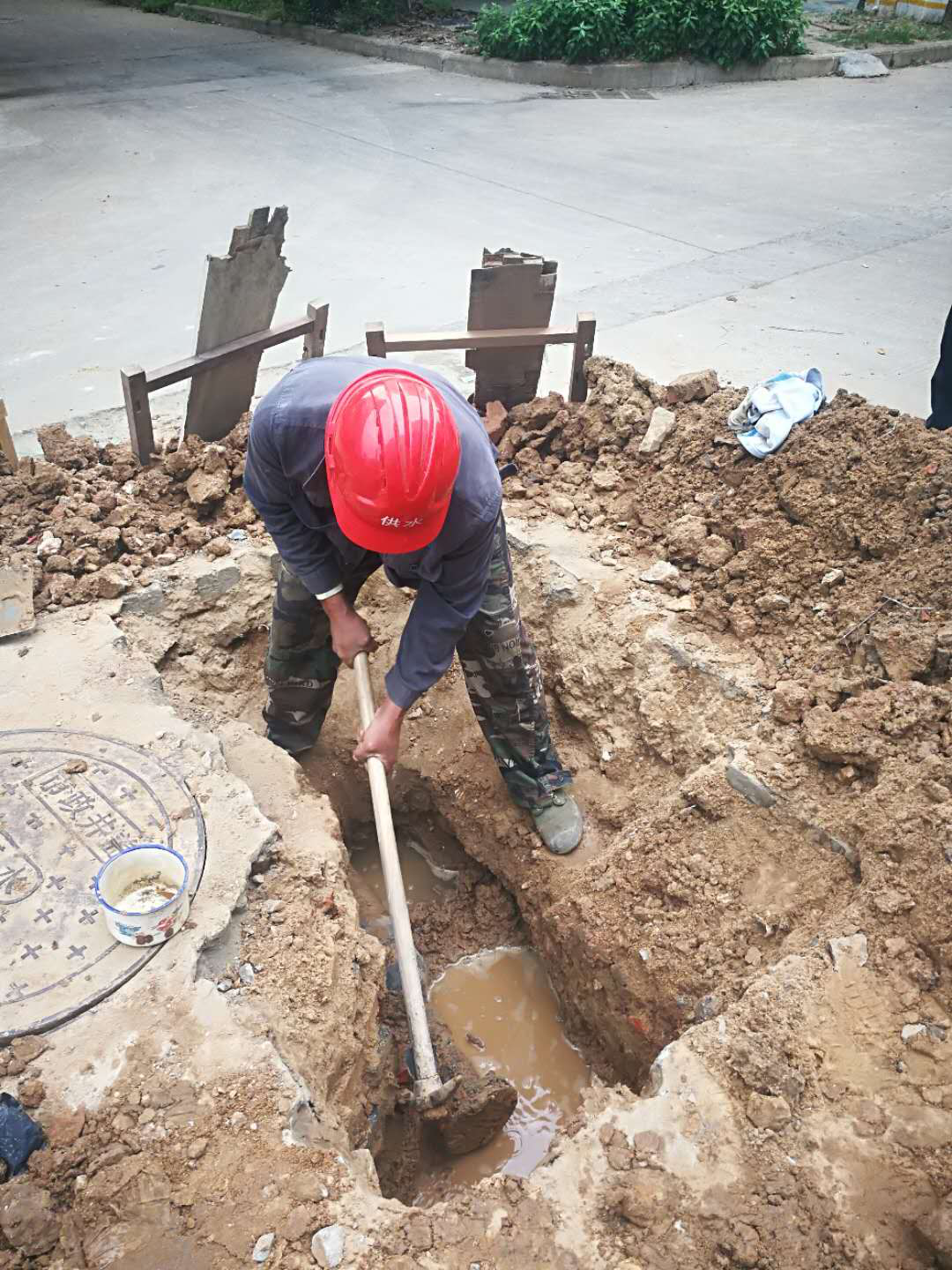據(jù)了解,兵工花園小區(qū)于去年10月開始進行“三供一業(yè)”管道改造,5月13日上午,我公司管安部門組織驗收時發(fā)現(xiàn),該小區(qū)供水管網(wǎng)存在漏水現(xiàn)象。經(jīng)工作人員初步檢查,懷疑是小區(qū)內(nèi)部自有管道存在漏點,后經(jīng)定點查勘,確認為是小區(qū)內(nèi)部PE110轉(zhuǎn)63管道預(yù)留口堵板處漏水。此前,應(yīng)小區(qū)業(yè)主要求,我公司進行“三供一業(yè)”管網(wǎng)改造時,對該小區(qū)部分原有供水管道予以保留。此次驗收試壓發(fā)現(xiàn)小區(qū)部分自有管道存在老化破損漏水現(xiàn)象。按規(guī)定,這種情況應(yīng)由小區(qū)自行處理,秉著為人民服務(wù)的理念,我公司主動承擔(dān)社會責(zé)任,根據(jù)現(xiàn)場的管道漏水情況,制定維修方案。對漏水點開挖、抽排水、更換墊片、封堵漏點,經(jīng)過了3個多小時的緊急維修,最終圓滿的解決了該小區(qū)管道漏水問題。
