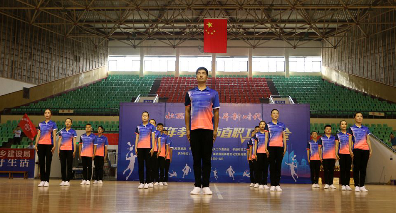 “現(xiàn)在請市住房和城鄉(xiāng)建設(shè)局參賽隊(duì)員上場。”主席臺上一聲令下,隊(duì)員們邁著整齊有力的步伐出場了,飽滿的精神狀態(tài)、整齊規(guī)范的步伐,一上場就收獲了熱烈的掌聲。一舉手、一投足,都彰顯了專業(yè)選手的風(fēng)范。短短四分鐘,工間操在隊(duì)員們標(biāo)準(zhǔn)的動(dòng)作中結(jié)束了。