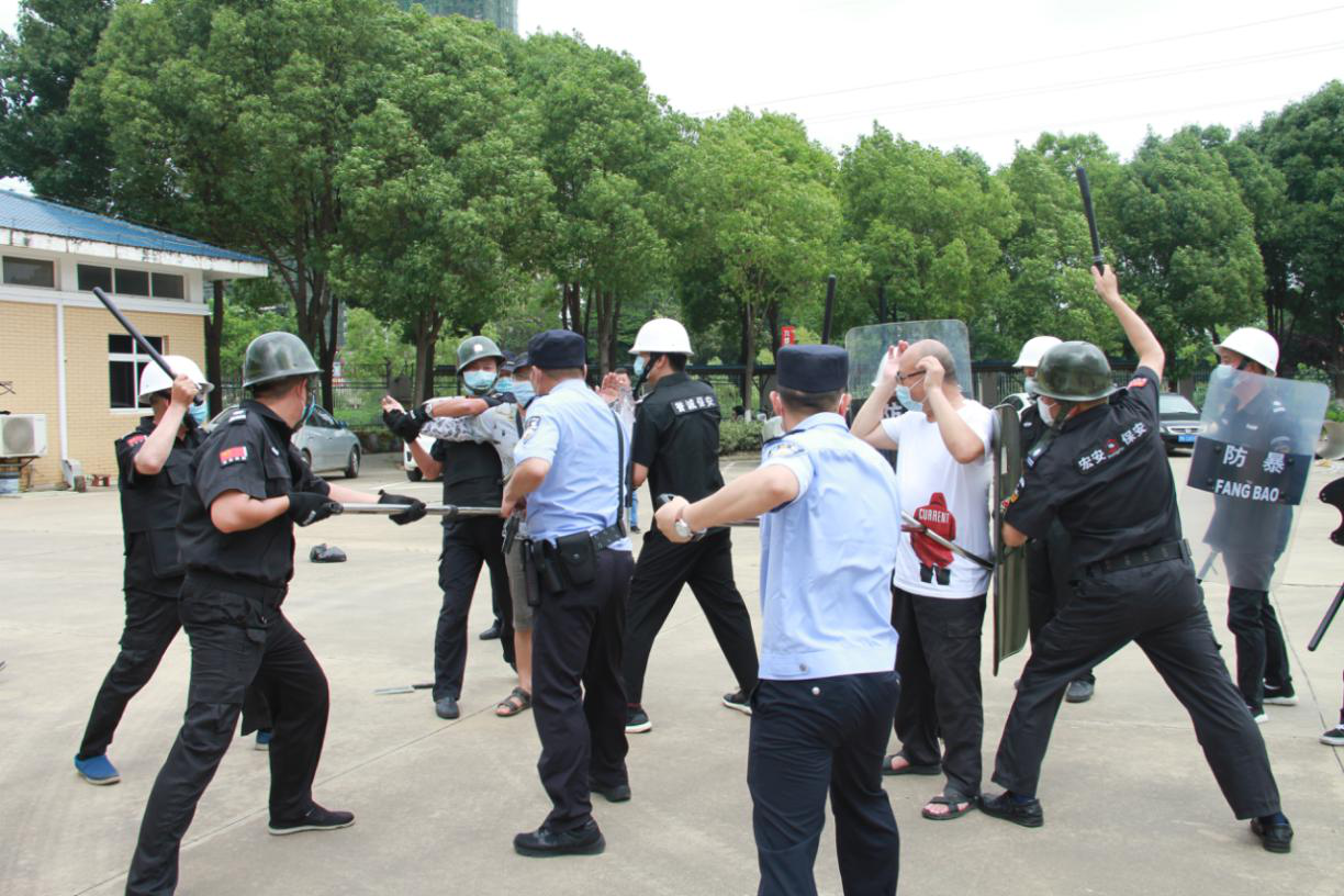 演練開始前,安保負責人宣讀演習分工細節(jié)及注意事項,并宣布啟動應急預案,各應急處置小組各自進入狀態(tài)。演習開始后,兩位手拿不明液體的閑雜人員假裝檢查人員強行破門而入!當班保安大聲呼救并與該名人員周旋,其中一名保安立即啟動一鍵報警裝置,拿出防爆鋼叉、防爆盾對抗歹徒!應急聯動人員接到報警后第一時間趕赴現場,經過警方談判專家的談判安撫,民警和水廠警衛(wèi)抓住暴恐分子放松警惕的空隙,使用專業(yè)反恐防暴器械將暴恐分子制服,安全解救了人質。此次演習圓滿結束,孝南公安局反恐大隊對此次演習方案及流程給予了肯定,對演習中出現的問題進行一一指導,在場人員受益匪淺。
