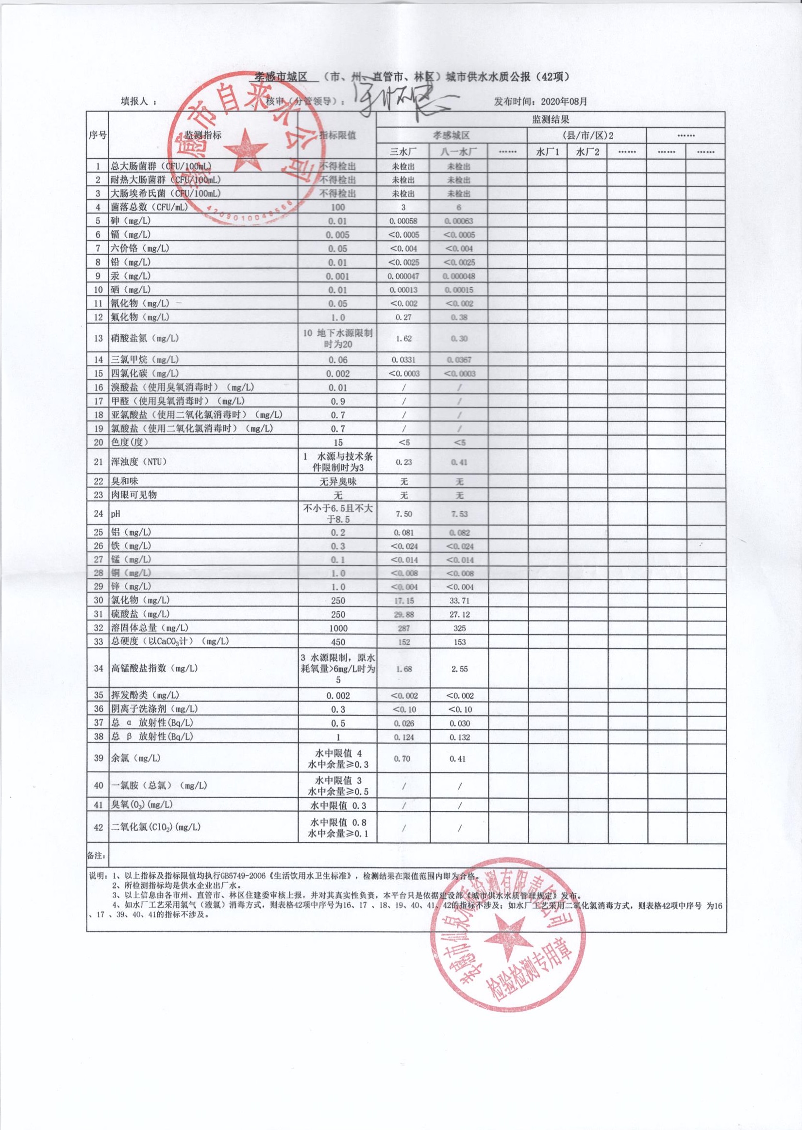 2020年8月水質(zhì)報告