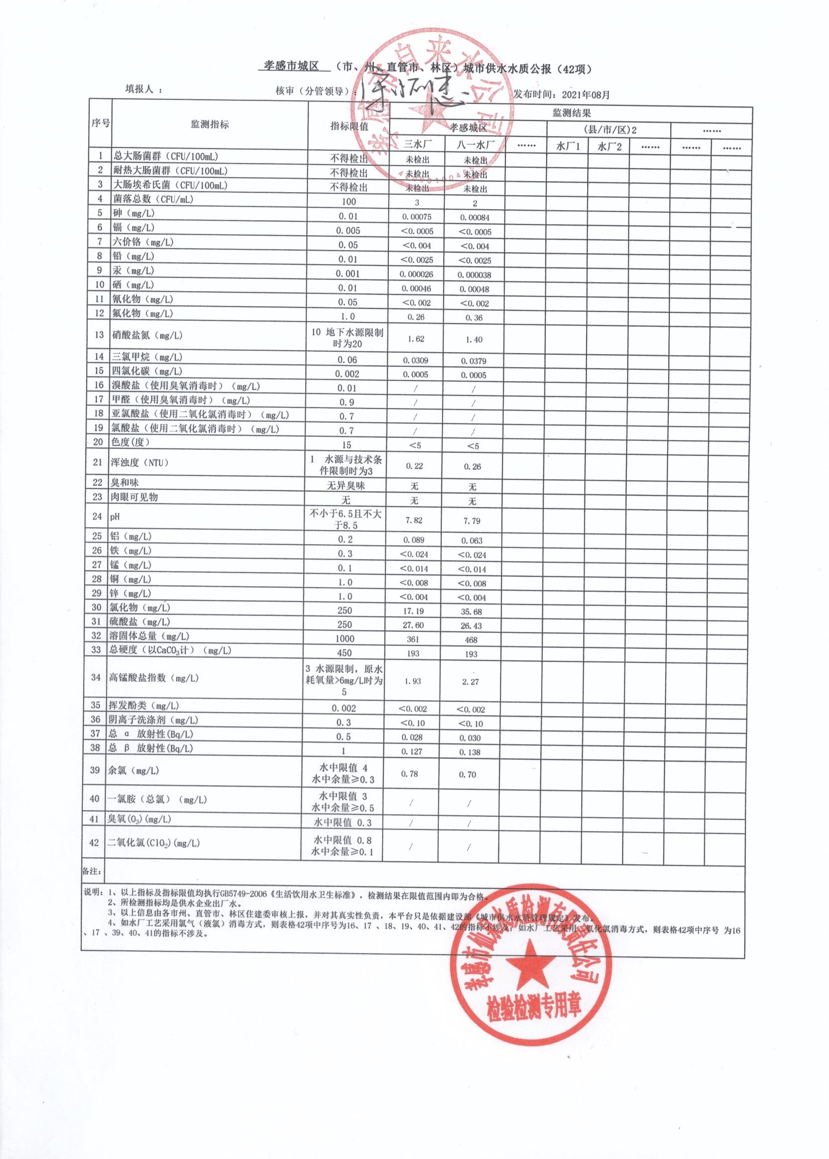 2021年8月水質(zhì)報告